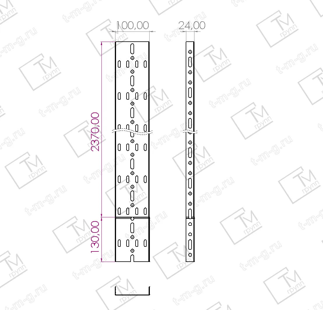 Лоток несущий прямой НЛ-10 производства «ТМ Групп» - это компактный металлический перфорированный короб шириной 100 мм и высотой 24мм для открытой прокладки кабелей, сочетающий историческую геометрию (ГОСТ 20783-81, шифр А26-94) для идеальной стыковки со старыми трассами и полное соответствие современным стандартам ГОСТ Р 52868-2021