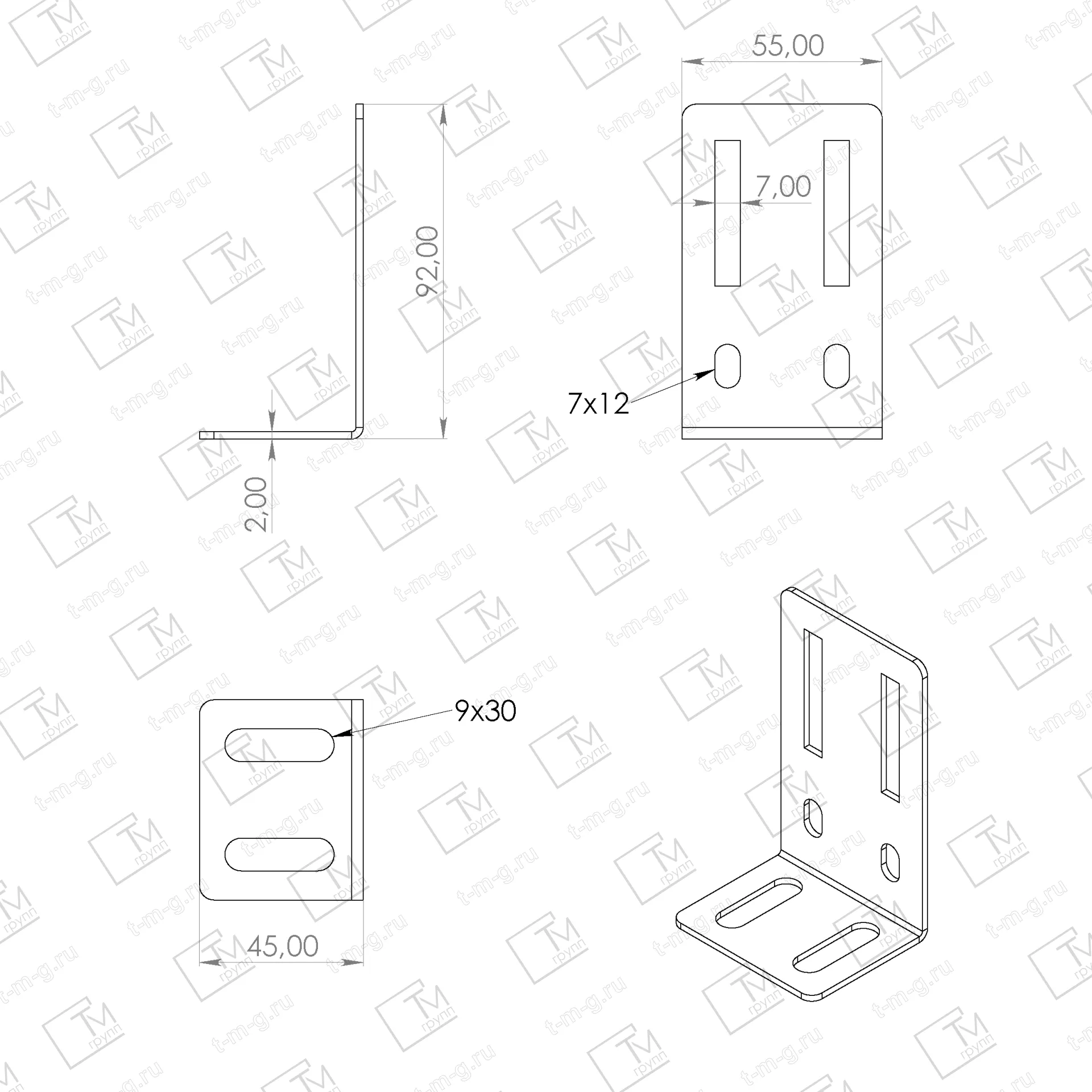 Стеновой кронштейн для крепления лестничных и листовых кабельных лотков к стене при вертикальной или напольной установке. Монтаж: установка на борт лотка и крепление к основанию анкерами под тип поверхности. Для лотков с бортом от 35мм до 100 мм, толщина 2 мм