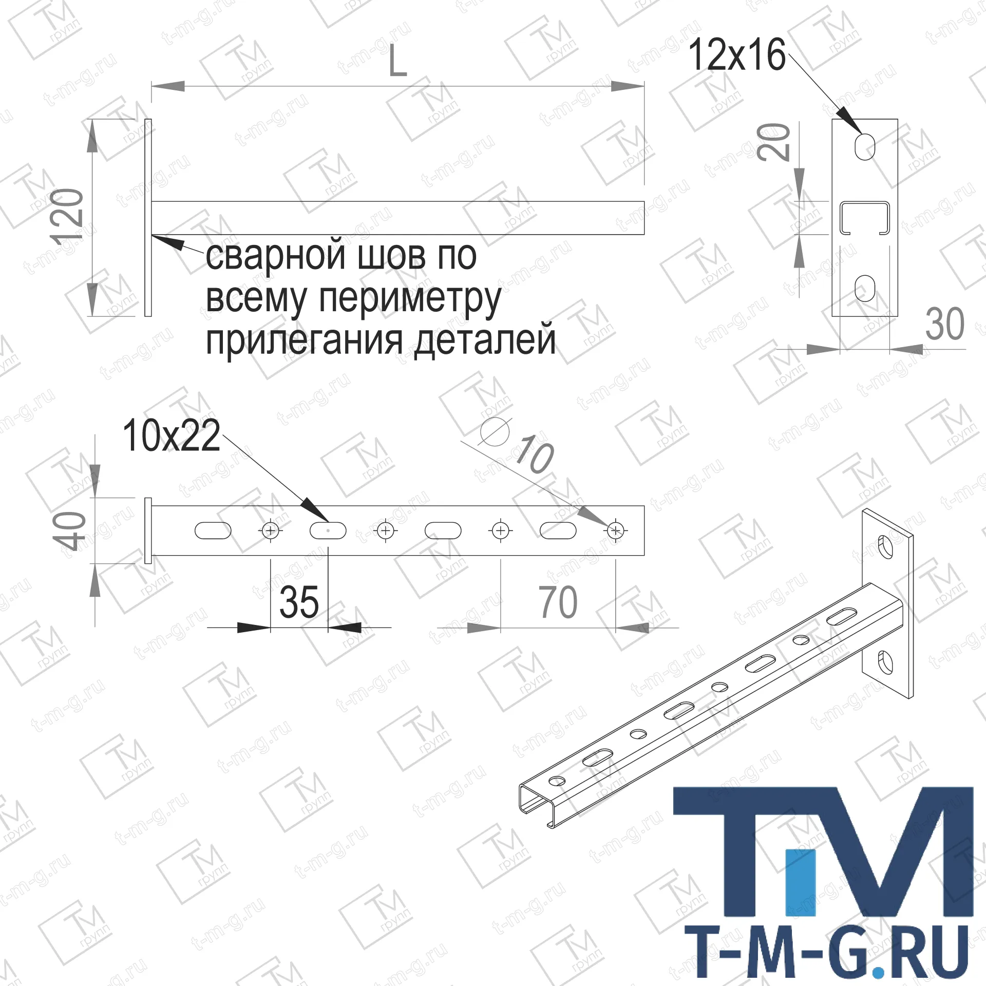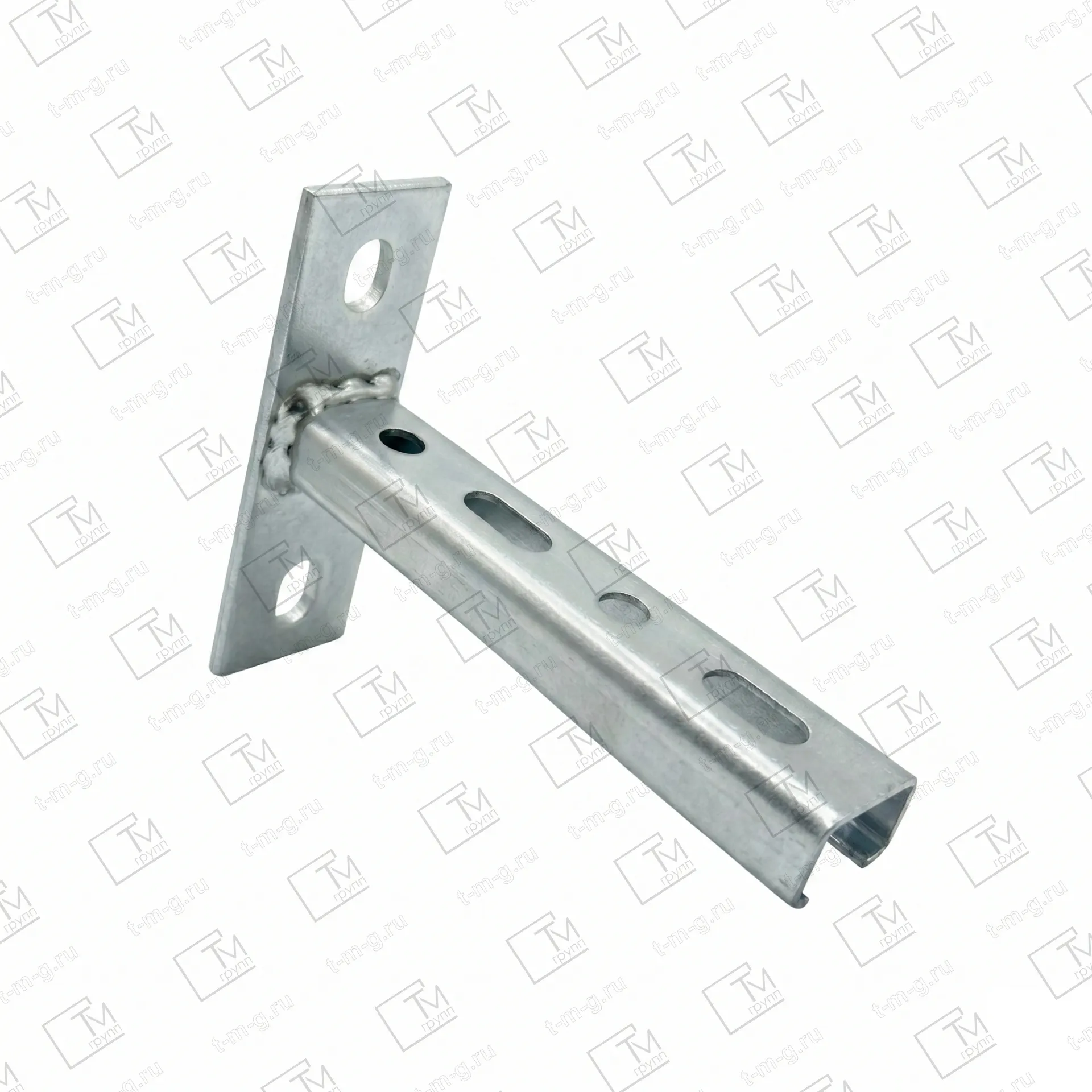 Универсальная стальная консоль на базе С-образного профиля сечением 30 мм×20 мм длиной 150 мм и толщиной 1,2 мм предназначена для надежного монтажа воздуховодов и кабельных трасс, обладая повышенной прочностью за счет круговой проварки шва в месте соединения с основанием 40 мм×120 мм×4 мм и полной защитой от коррозии благодаря гальваническому цинкованию всех поверхностей и полостей после сварки.